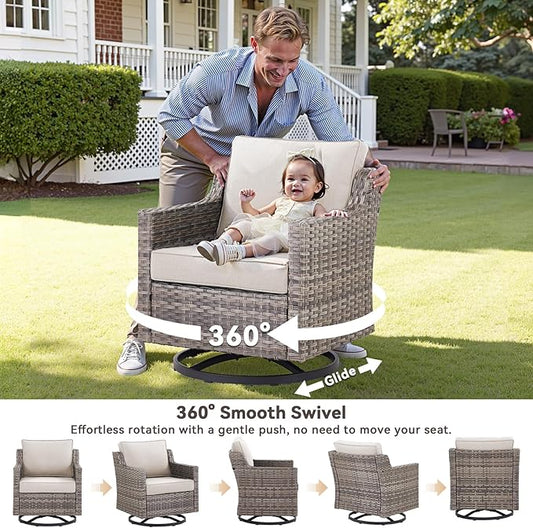 10 Piece Patio Furniture Set-High Back Outdoor Furniture Set Sectional Sofa with Wicker Swivel Patio Chairs,Comfy Cushions Ottomans for Porch Balcony Patio Deck Grey/Beige