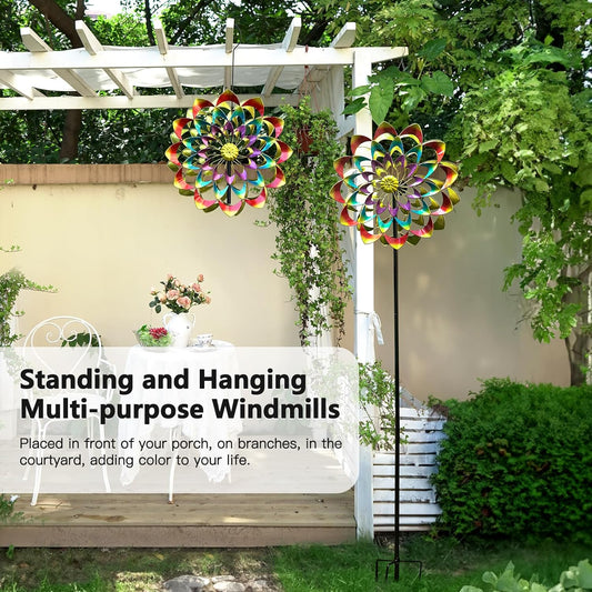 Garden Wind Spinner,Flower Wind Spinner,Outdoor Metal Wind Sculpture & Spinner Large 23 inch Dia 84 inch Height Kinetic Windmill for Garden Yard