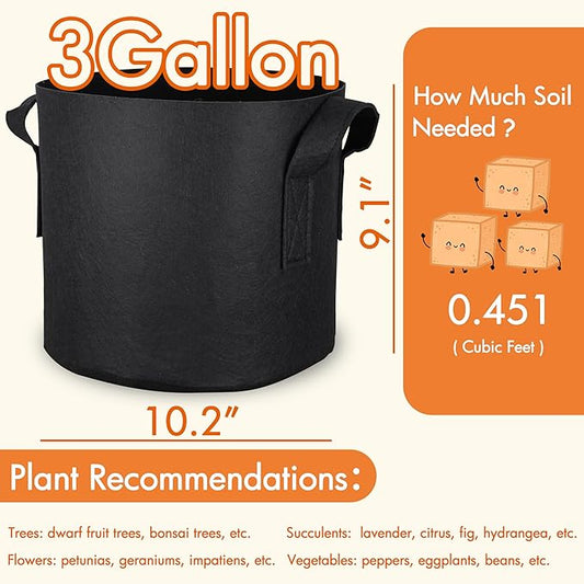Gardzen 10-Pack 3 Gallons Grow Bags, Aeration Fabric Pots with Handles, Heavy Duty Cloth Pots for Plants
