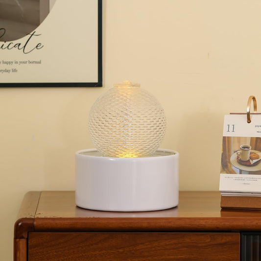 Generic Indoor Water Feature Tabletop Ceramic Fountain Home Kitchen Office Decoration Modern Design Style (white)