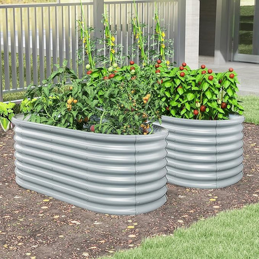 Giantex 5x3x2ft Raised Garden Bed, Large Metal Elevated Oval Planter Bed, 193 Gallon Capacity, Outdoor Planting Garden Box for Vegetable Flower Herb Grow (Grey)