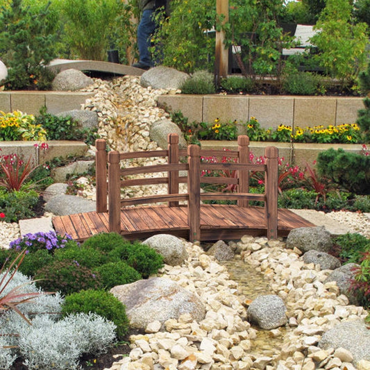 Giantex 5 ft Garden Bridge - Stained Wood Arc Footbridge Walkway with Side Railings, Decorative Wooden Bridge Landscaping for Backyard Farm Garden Creek Pond Decor, Easy to Assemble (Stained Brown)