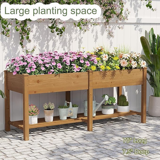 GHWIE Raised Garden Bed with Shelf,Elevated Wooden Planter Box with Legs,Garden Planter for Backyard, Patio, Balcony