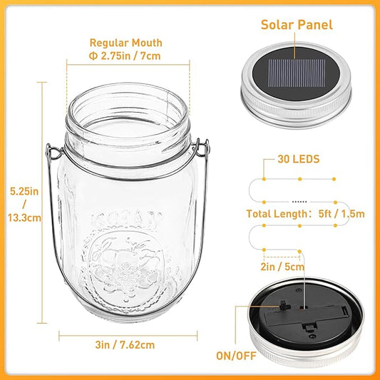 GIGALUMI Solar Mason Jar Lights, 12 Pack 30 Led String Fairy Lights Garden Lights Outdoor Waterproof Metal Lid Hanging Solar Lanterns for Outdoor, Garden, Patio, Lawn, Balcony Decoration