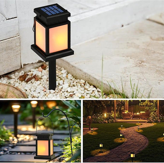 GIGALUMI Solar Lights for Outside,6 Pack Flickering Flame LED Solar Outdoor Lights, Waterproof Solar Garden Lights Maintain 10 Hours of Lighting for Christmas, Garden, Landscape, Path, Yard, Patio