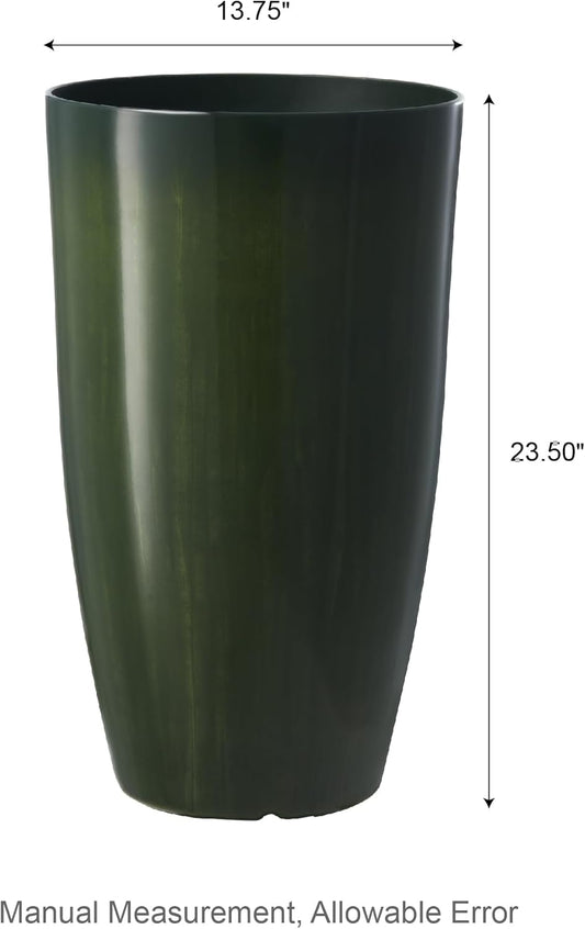 Glitzhome 23.5" H Large Tall Planter for Outdoor Plants,Set of 2 Plastic Tall Planters with Drainage Holes,Round Tapered Faux Ceramic Gradient Green Flower Tree Pots for Porch Patio Indoor Outdoor
