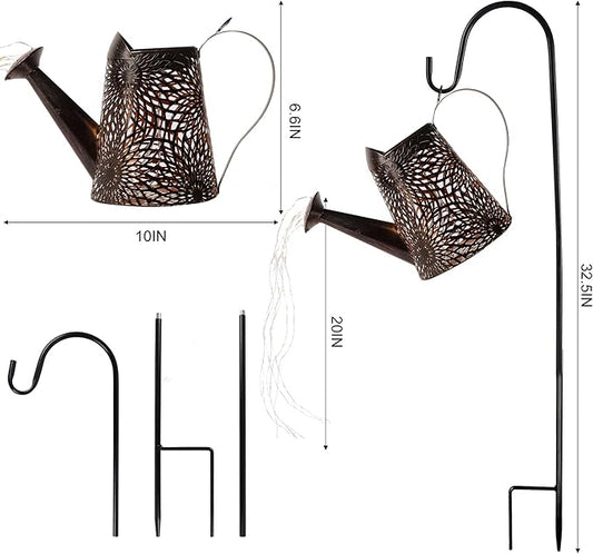 Glintoper 2 Pack Outdoor Solar Watering Can Garden Lights, Metal Waterfall Figurine Lights with Shepherd Hook, Decorative Yard Art for Mom, Mothers Day Ideal Gifts, for Patio Walkway Pathway Lawn
