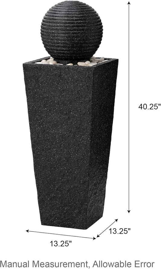Glitzhome Outdoor Water Fountain with LED Light, Oversized Decorative Black Pedestal Water Fountains with Submersible Pump, Modern Sphere Floor Fountain with Pebbles for Garden Patio Decor, 40.75”H