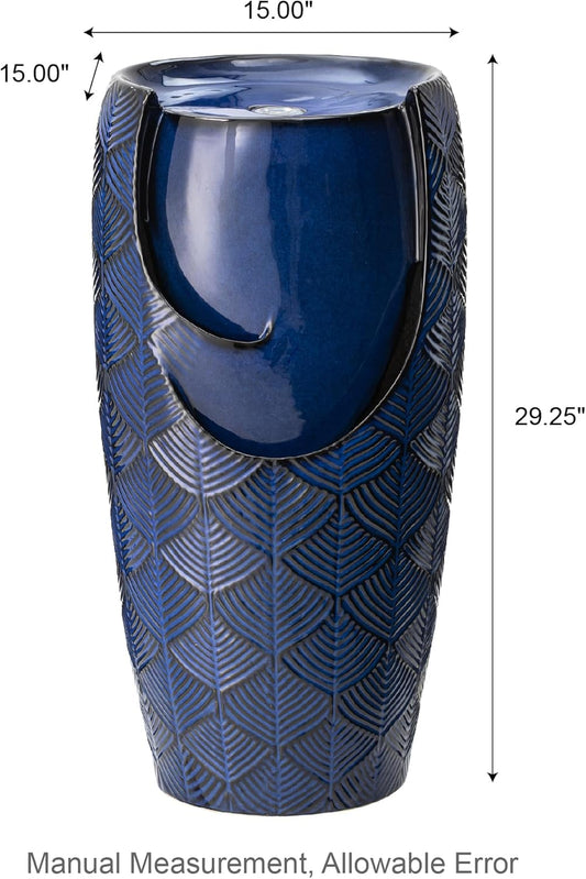 Glitzhome 29.25" H Oversized Ceramic Vase Outdoor Water Fountain, Tall Scale-Like Textured Glaze Patio Garden Water Fountain with LED Light and Submersible Pump Yard Art Decor, Cobalt Blue