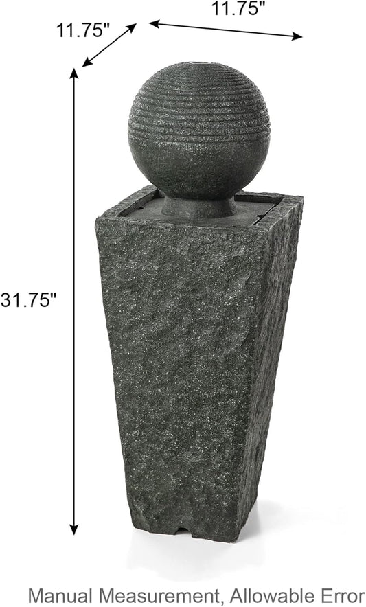 Glitzhome Outdoor Water Fountain with LED Light, Decorative Black Pedestal Water Fountains with Submersible Pump, Modern Sphere Floor Fountain with Pebbles for Garden Patio Decor Porch, 31.75”H