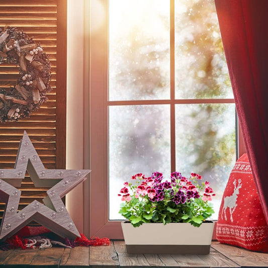GREANER Window Boxes, 3 Pack 12x3.8 Inch Mixed Color Rectangle Herb Planters with Tray, Indoor Succulent Cactus Plastic Saucer Pot for Windowsill, Balcony, Office, Outdoor Garden (Black, White, Beige)