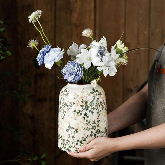 Green Vintage Vase, Chinoiserie Floral Vases, Retro Ice Cracked Ceramic Large Vases for Home Decors, Living Room, Bookshelf, Office, Grand Millennial Decor, Chinoiserie Decors, Tuscan Decor 7.8 Inch