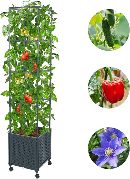 GREEN MOUNT Raised Garden Bed Planter Boxes with Trellis for Climbing Vegetables Plants, 56.7" Tomatoes Planters Outdoor Tomato Cage w/Wheels