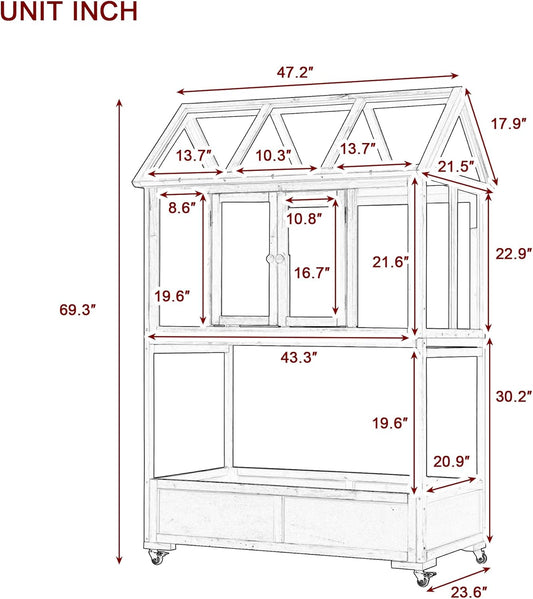 Greenhouse Cold Frames with Wheels - Adjustable Shelves Portable Cold Frame for Balcony/Patio, UV-Resistant Indoor Outdoor Plant Growing Cabinet (Large, Heavy-Duty) (White)