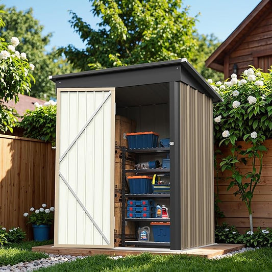 Greesum Outdoor Storage Shed 5 x 3 ft. Utility Tool Shed Metal Storage Garden Shed with Door & Lock for Patio Storage, Brown