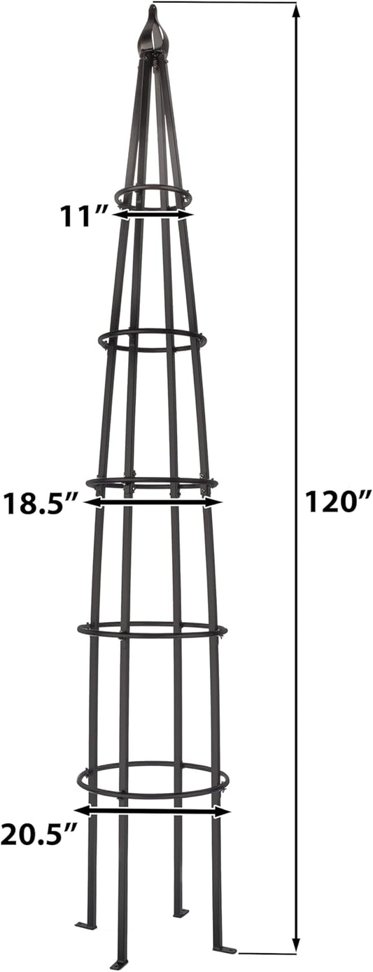 H Potter Tall Iron Obelisk Trellis Powdercoated Metal Finish Garden Decor Column for Climbing Plants (Black, 10 FT Tall)