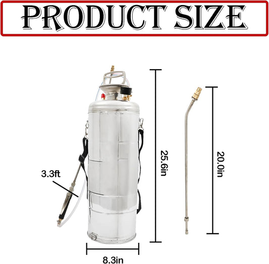 Hand Pump Sprayer Stainless Steel Sprayer for Indoor and Outdoor 2 Gallon Sprayer 20 in Wand 3.3 FT Hose