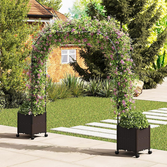 Happygrill 80" Garden Arch Trellis, Metal Archway Pergola with 2 Planter Boxes, Detachable PE-Coated Metal Tubes, Self-Watering System & Lockable Wheels, Outdoor Arbor for Climbing Plants