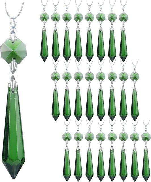 HDCRYSTALGIFTS 25pcs 55mm Green Crystal Icicle Pendant Chandelier Prisms Drops Lamp Candle Holders Curtain DIY Parts