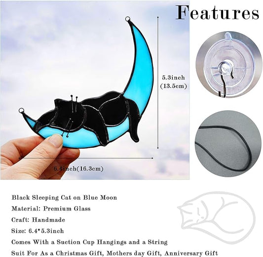 HDCRYSTALGIFTS Black Cat Decor Suncatcher Stained Glass Window Hanging,Handcrafted Kitty Decor Funny for Cat Lovers,Home Decoration for Window Patio Office Living Room Wall
