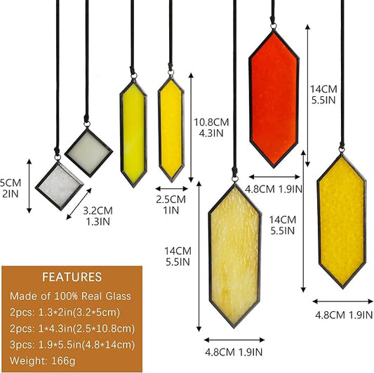 HDCRYSTALGIFTS 7pieces Stained Glass Window Hanging Suncatchers Handcrafted Modern Sunset Glow Design Stained Glass Wall Art Sun Catcher for Home Garden Decoration Reconfigurable