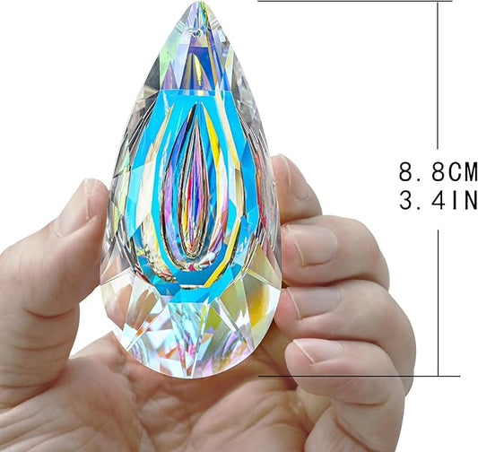 HDCRYSTALGIFTS Set 2 Crystal Sun Catcher Prisms Pendant for Window Hanging Decor,3inch AB Colored Crystal Suncatchers Rainbow Maker Light Catcher for Home Indoor Garden Ornament