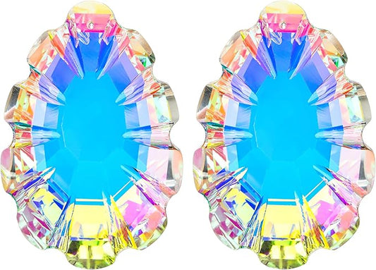 HDCRYSTALGIFTS Set 2 AB Color Crystal Suncatcher Datura Shaped Pendant Rainbow Feng Shui Hanging Prism (45mm)