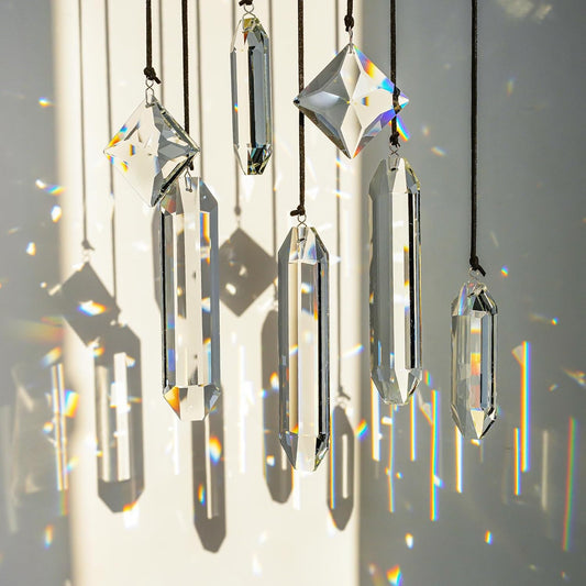 HDCRYSTALGIFTS Modern Grief Gift,Set 7 Clear Crystal Prisms Suncatchers Hanging Ornament,Rainbow Maker Sun Catchers for Windows, Balcony, Kitchen, Garden Decoration