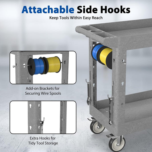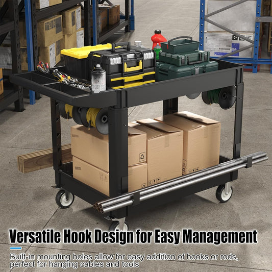 Heavy Duty Rolling Utility Cart with Wheels 2-Tier Utility Plastic Service Work Cart for Shop, Garage, Warehouse, Maintenance 550 lbs