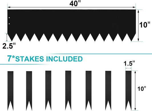 10 Inch Metal Landscape Edging, Heavy Duty Galvanized Steel Garden Edging,6 Pack Steel Landscape Edging with 7 Clips for Lawn, Flower Bed, Yard (Black)