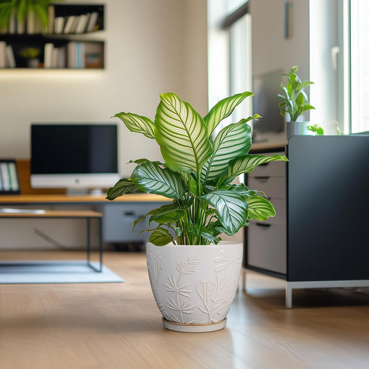 10 Inch Plant Pot - Ceramic Planter for Indoor Outdoor Flowers, Decorative Round Indoor Flower Pot with Drainage Hole and Saucer, Plant Lover Gifts, Garden Patio Home Office Decor, White