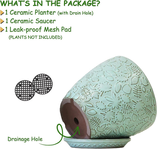 10 inch Plant Pots Ceramic Planter with Drainage Holes and Saucer for Multiple Plants, Indoor-Outdoor Garden Pots for Succulent, Orchid, and Flower