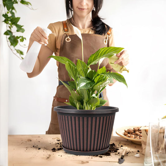 10 Inch Plastic-Flower-Pot-for-Indoor-Plants, 4 Pack Large Outdoor Planter Pot with Drainage Holes & Saucers, Resin Decorative Garden Pots Planters