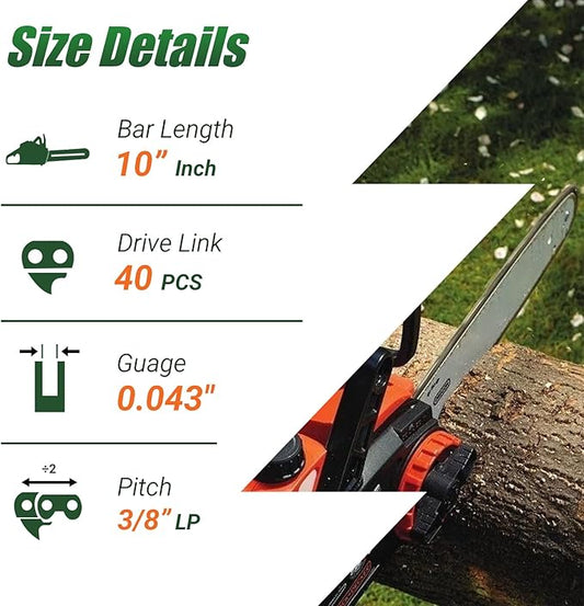 10 Inch Saw Chain 3/8" LP Pitch 0.043" Gauge 40 Drive Links Fits for Worx WG322,WG323 LCS1020, CMCCS610D1 - R40 Chainsaw (3 Chains)