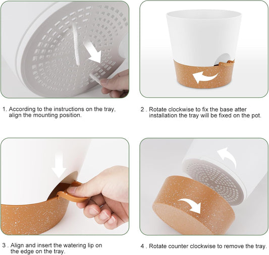 10 inch Plant Pots, Self-Watering Planters with Drainage Holes & Saucers for Indoor and Outdoor Plants (2-Pack,White
