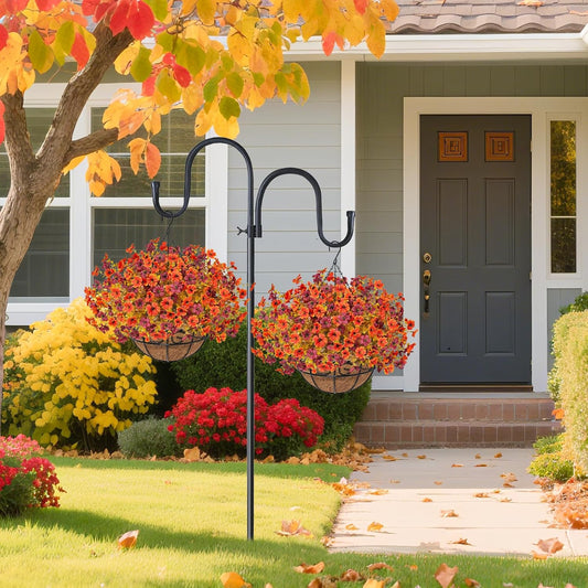 Fall Artfiticial Hanging Flowers Baskets for Outdoors, UV Resistant Fake Fall Hanging Plants, Faux Orange Flowers for Autumn Home Patio Garden Front Porch Balcony Decor (Orange Red)
