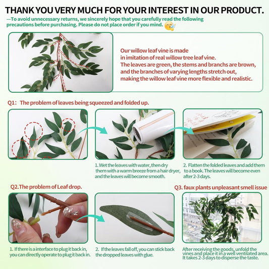 RECUTMS Artificial Willow Leaves Vine Twigs 2Pcs 5.7Ft Fake Hanging Ivy Plants Silk Green Leaf Rattan Garland Greenery Decor for Indoor Outdoor Home Wedding Arch Jungle Beach Birthday Party Garden
