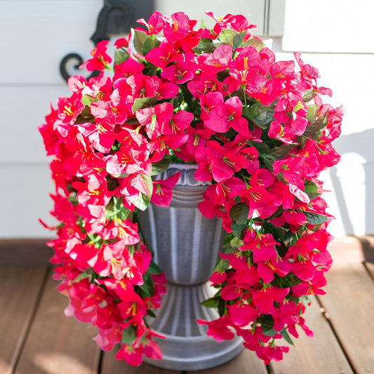 Bougainvillea Artificial Hanging Flowers Plants for Outdoors Decoration, 2pcs Fake Flowers Silk Bougainvillea Vines Realistic UV Resistant Faux Flowers for Planters Porch Patio Urn, Hot Pink