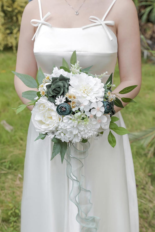 Forest Green Artificial Flowers Silk Fake Roses Peonies Greenery Combo Box Set for DIY Wedding Bouquets Bridal Shower Centerpieces Floral Arrangements Party Tables Home Decoration