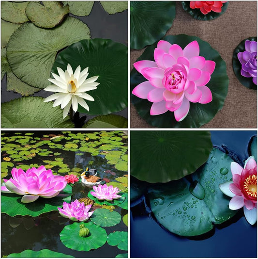 4 Pieces Artificial Floating Lotus Flowers with Lily Pads, Decorative Foam Water Plants for Pond, Pool, Garden Fish Tank Aquarium Home Garden Special Decoration Outdoor DΓ©cor,Artificial Flowers