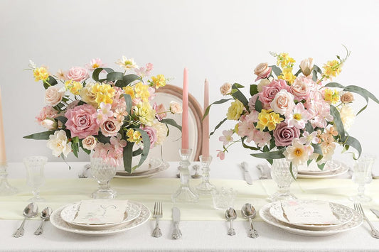 Artificial Flowers Combo for DIY Centerpieces Arrangements Wedding Bouquets Centerpieces Arrangements Party Baby Shower Home Decorations (Yellow Pink)