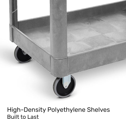 Tubstr Extra Large Two-Shelf Utility Cart with Wheels | 500 lb. Capacity Rolling Utility & Tool Cart for Warehouses, Industrial Settings, Auto Garages, & More (Gray, 45.5 x 24.5)
