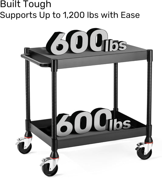 Tubstr Extra Large Two-Shelf Utility Cart with Wheels | 500 lb. Capacity Rolling Utility & Tool Cart for Warehouses, Industrial Settings, Auto Garages, & More (Black, 45.5 x 24.5)
