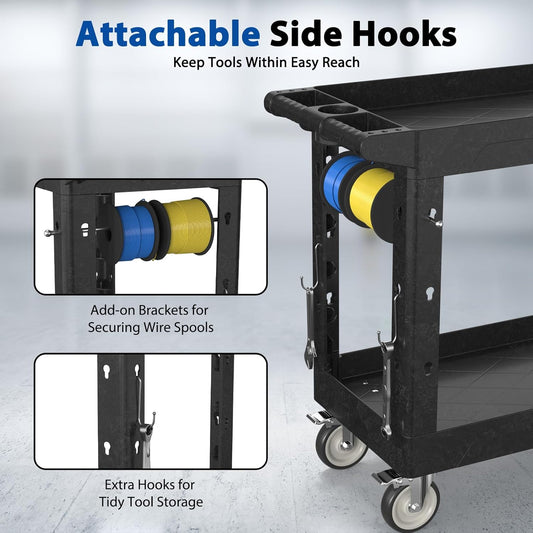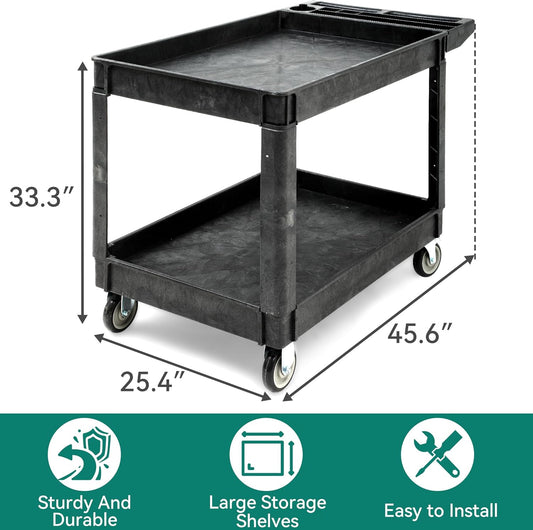 Heavy Duty Rolling Utility Cart with Wheels 2-Tier Utility Plastic Service Work Cart for Shop, Garage, Warehouse, Maintenance 550 lbs