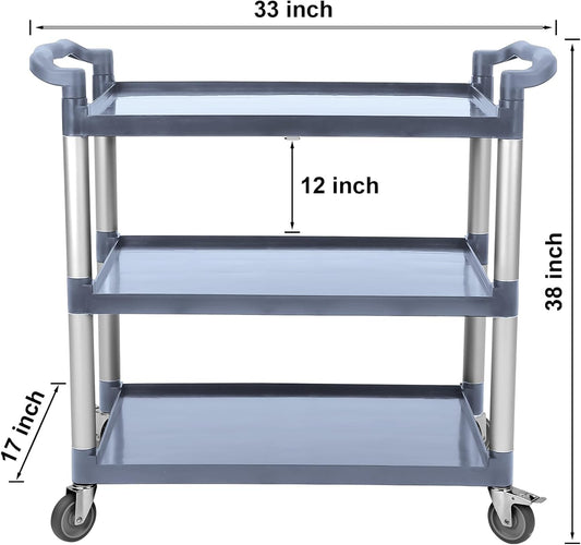 3-Tier Rolling Utility Cart with Wheels β Heavy Duty Plastic 3-Shelf Push Cart for Commercial, Restaurant, Foodservice, Office & Kitchen | Grey Service Cart