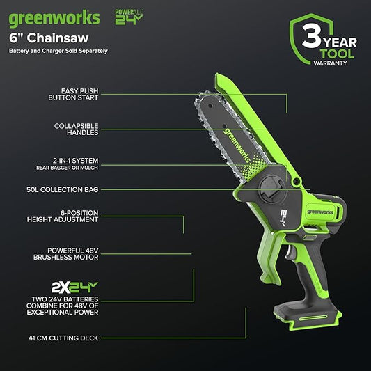 Greenworks 24V 6in BL Pruning Saw w/Auto Oiler, Tool Only