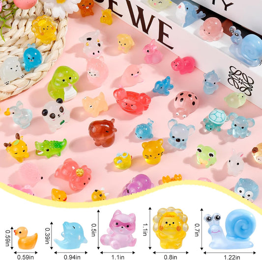 52Pcs Luminous Mini Resin Animals 52 Styles Miniature Glow in the Dark Resin Animal Figures to Hide Tiny Small Little Ducks Turtles Dinosaurs and Frogs for Micro Landscape Dollhouse Fairy Garden Decor
