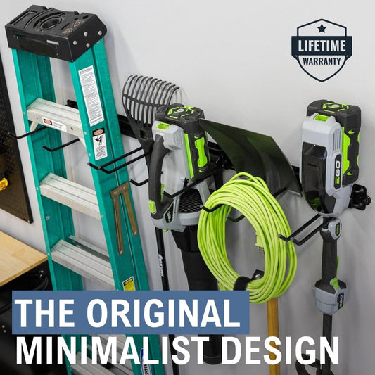 Heavy Duty Utility Hook System - Wall Mounted Garage Hooks for Bikes, Ladders, Tools & More - Black