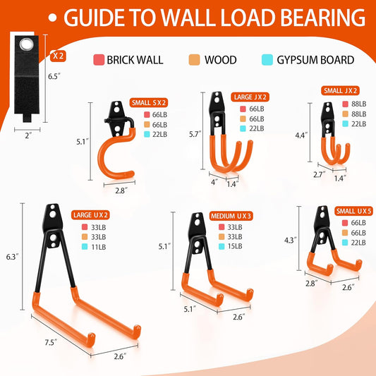 26 Pack Garage Hooks Heavy Duty Utility Steel with Anti-Slip Coating Wall Mount Storage Organizer for Hanging Power and Garden Tools, Ladders, Hose, Bikes, Ropes, Bulk Items, and More
