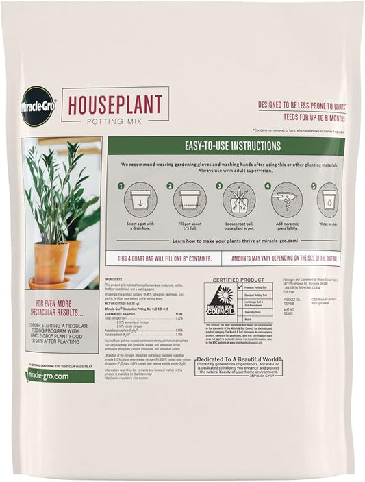 Miracle-Gro Houseplant Potting Mix - Fertilized Soil, Designed to be Less Prone to Gnats, 4 qt. (2-Pack)
